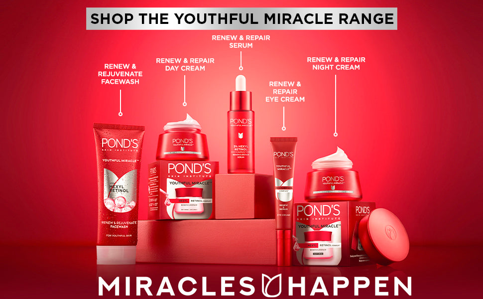 Experience the miracle of your ultimate youthful skin with the entire POND”S YOUTHFUL MIRACLE RANGE.