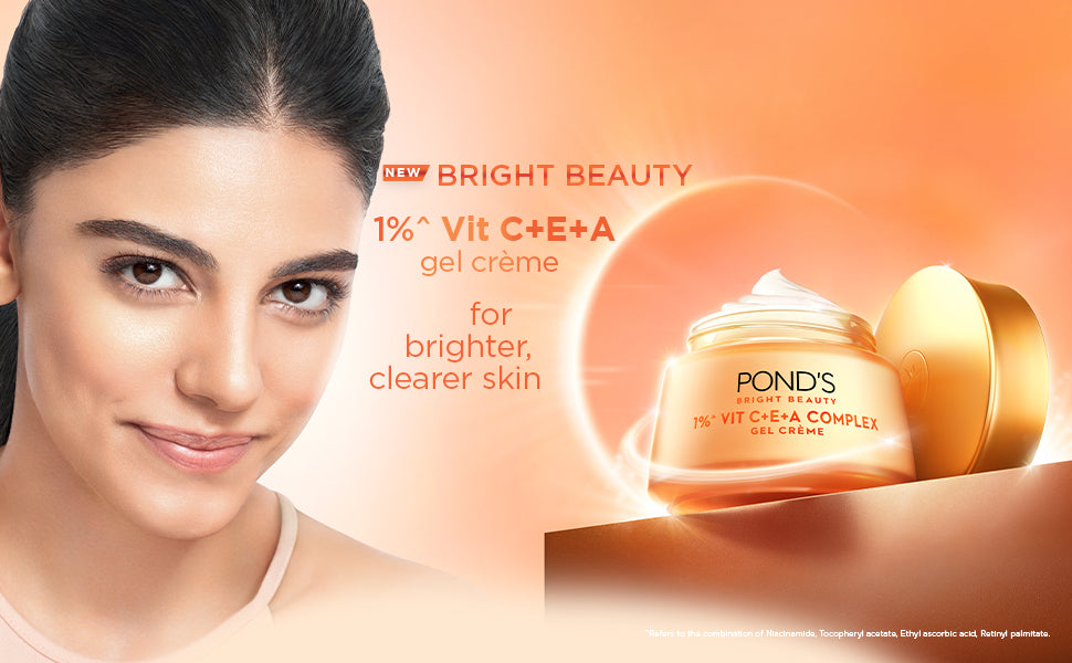 It's time to level up your skincare game with a powerhouse product that gives you multiple benefits in one. POND'S Bright Beauty 1% Vit C+E+A Gel Creme is a revolutionary formulation that combines the power of not one or two but 3 potent ingredients to give you the clear, radiant skin you have always dreamt of. This expert formulation blends the benefits of Vitamin C, Vitamin E and Vitamin A to give you the best of skincare in one product. With 1% Vitamin C+E+A complex, this gel creme helps you reduce pigmentation, fade acne scars, and even out skin tone, giving you a luminous glow.