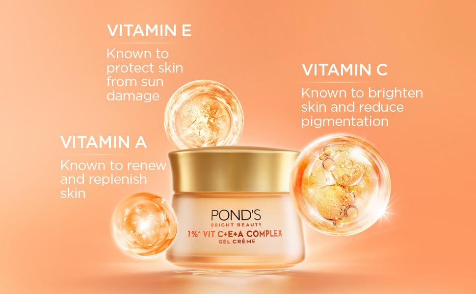 It's time to level up your skincare game with a powerhouse product that gives you multiple benefits in one. POND'S Bright Beauty 1% Vit C+E+A Gel Creme is a revolutionary formulation that combines the power of not one or two but 3 potent ingredients to give you the clear, radiant skin you have always dreamt of. This expert formulation blends the benefits of Vitamin C, Vitamin E and Vitamin A to give you the best of skincare in one...