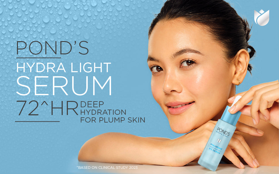 Grab your POND'S Hydra Light Hyaluronic Acid complex 2% serum for an intense deep hydration that lasts for 72Hr.