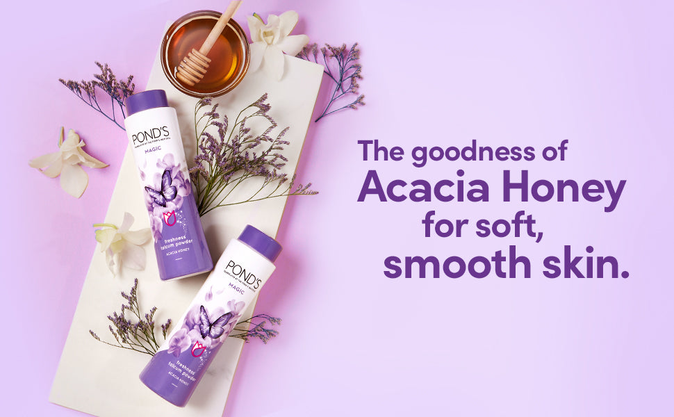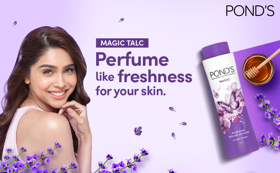 We often wonder if a product could help us retain the shower like freshness throughout the day! Presenting POND'S Magic Freshness Talcum powder - Infused with fragrance of Acacia Honey, that gives you an instant burst of freshness.